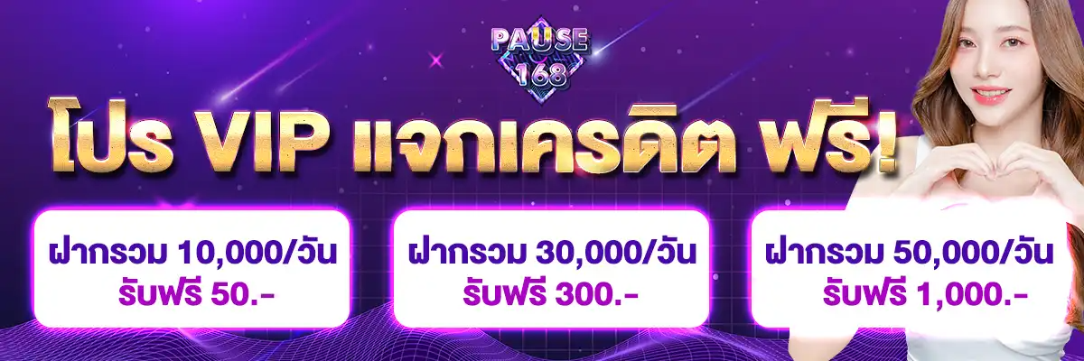 นอกจากโบนัสแรกเข้าแล้ว pause168 ยังมีเครดิตฟรีให้สมาชิกได้ทดลองเล่นเกมต่างๆ โดยไม่ต้องฝากเงิน ทำให้คุณสามารถทดสอบระบบและทำความคุ้นเคยกับเกมก่อนลงเดิมพันจริง ที่สำคัญเครดิตฟรีนี้สามารถนำไปใช้ได้กับเกมทุกประเภทบนเว็บไซต์ ไม่ว่าจะเป็นสล็อต บาคาร่า หรือกีฬา